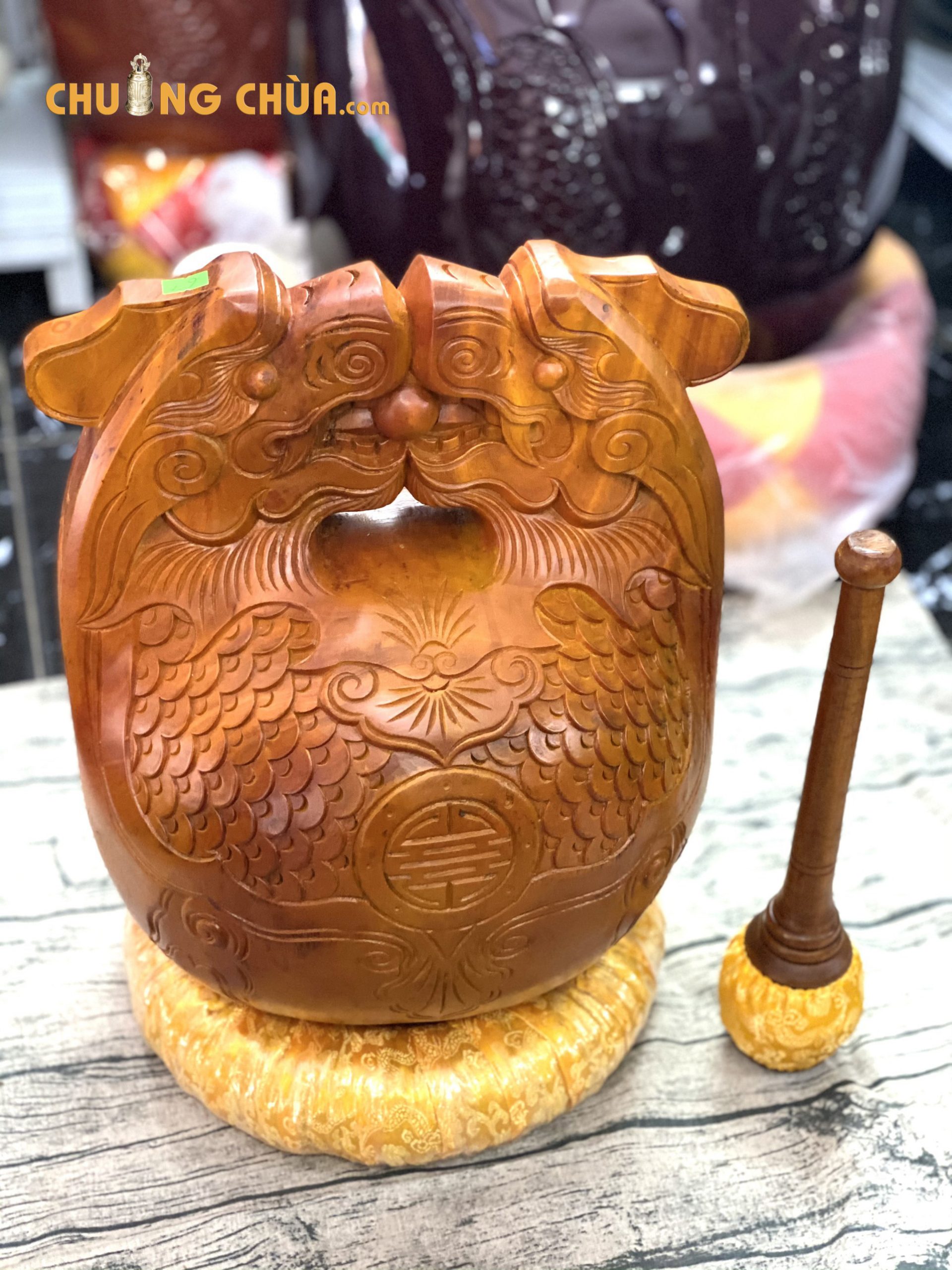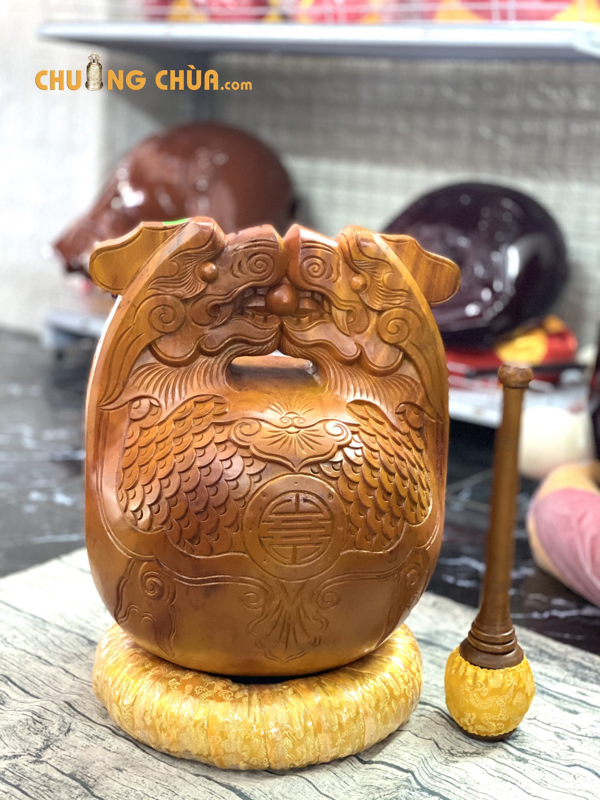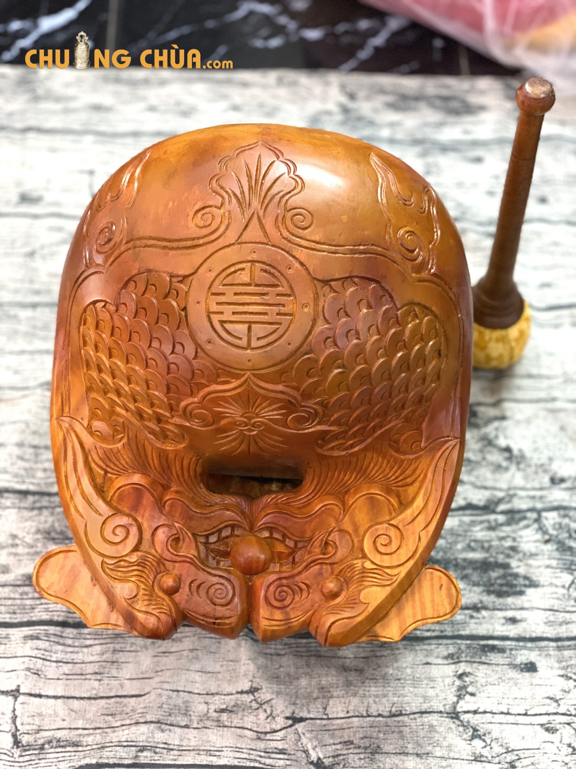 Siêu thị phật giáo Phong Vân chuyên sản xuất và cung cấp chuông mõ tụng kinh phục vụ quý Phật tử; thầy cô trên toàn quốc với sản phẩm chất lượng nhất. Kính mời quý thầy cô, phật tử cùng tham khảo mẫu Mõ tụng kinh Huế 6 tay lõi mít của chúng tôi.